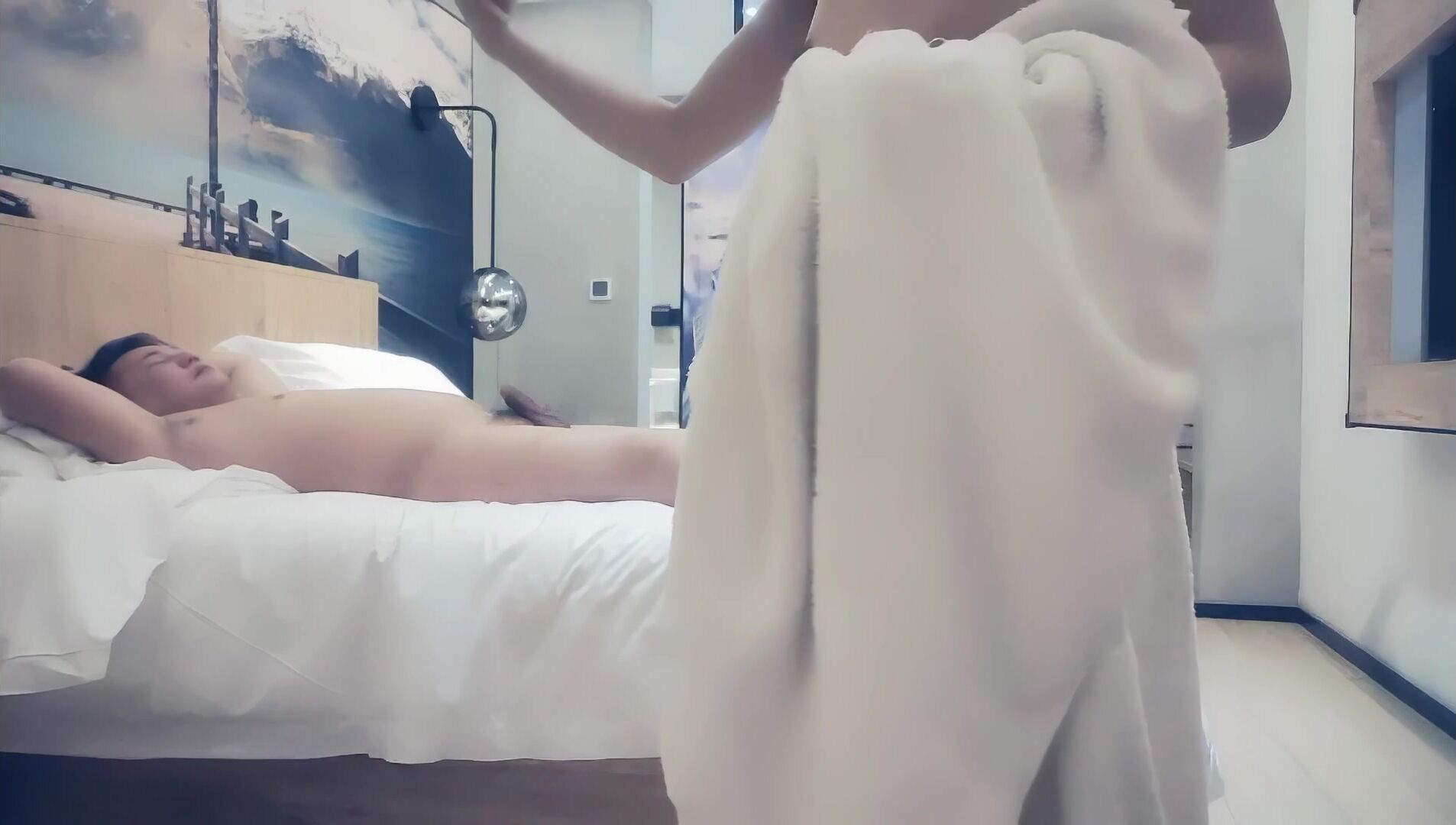 高颜值黄发妹子啪啪,洗完澡开干撸硬抬腿侧入抽插猛操!